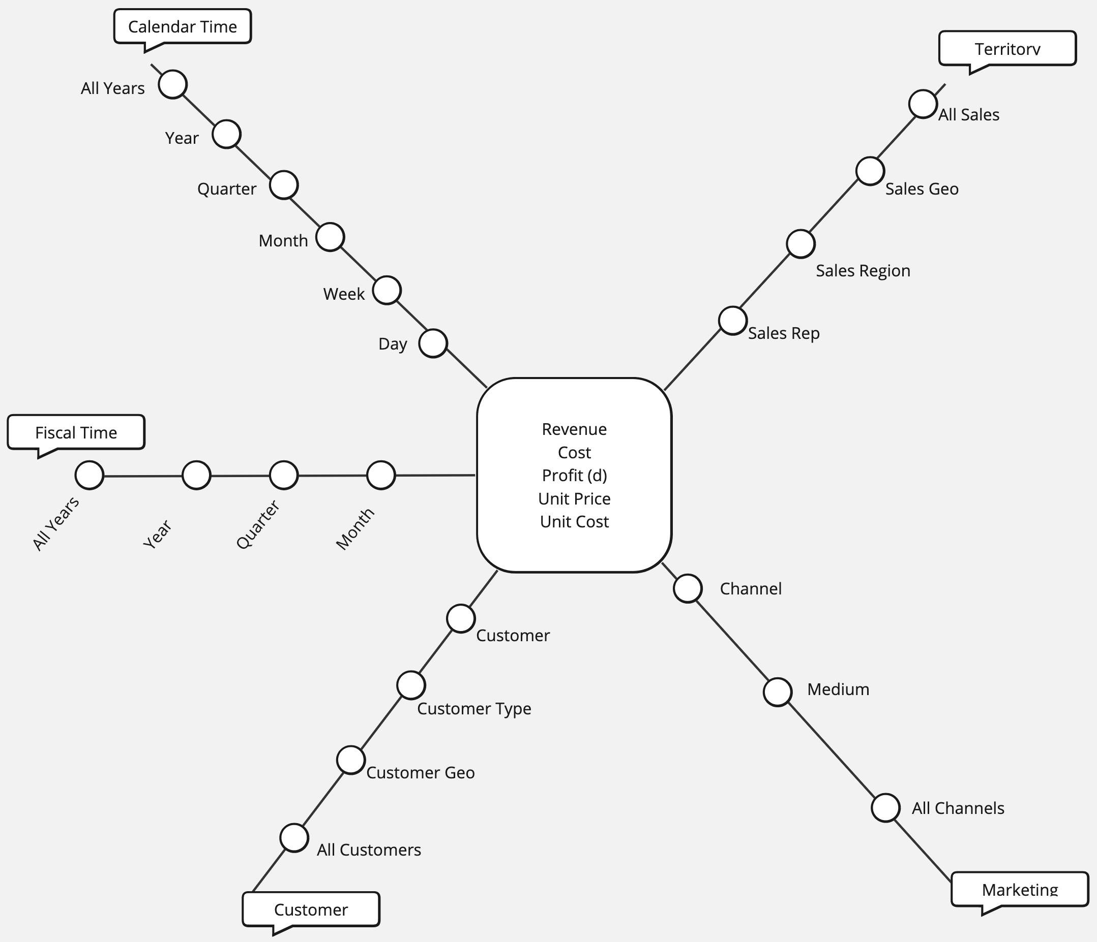 For example, a revenue measure is meaningless without the context provided by dimensions, such as time periods.